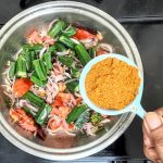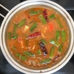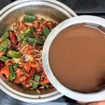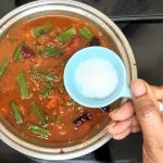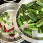 - I have used Okra/Ladysfinger here, other vegetables that can be used are Drumsticks, Shallots, Onions, dehydrated berries like Turkey berry(Sundakai), and even dehydrated vegetables like Cluster beans, Bitter gourd, etc.