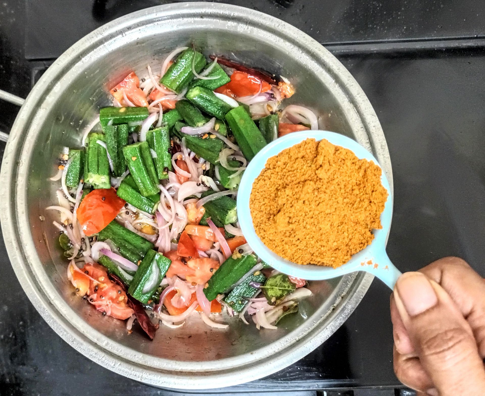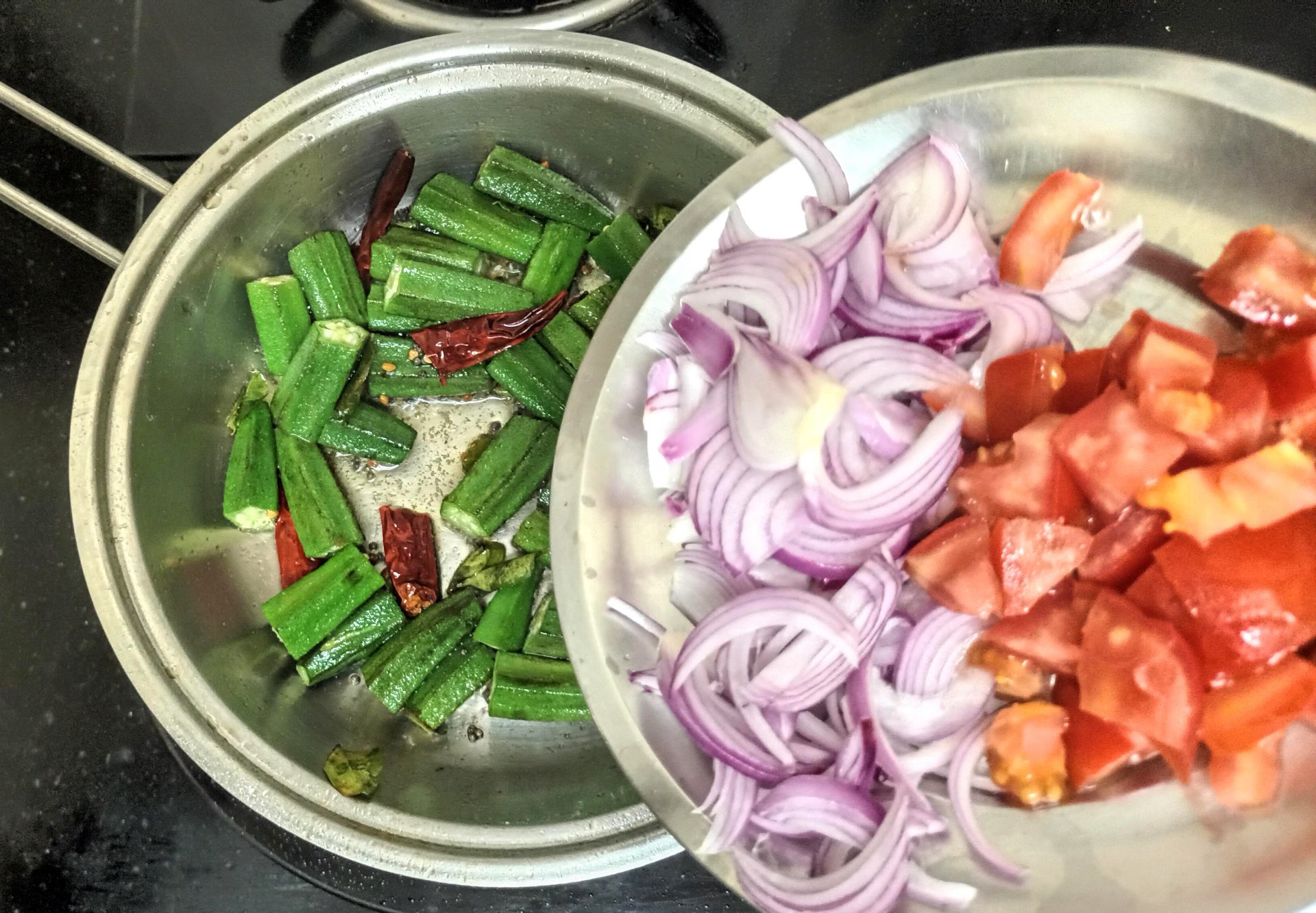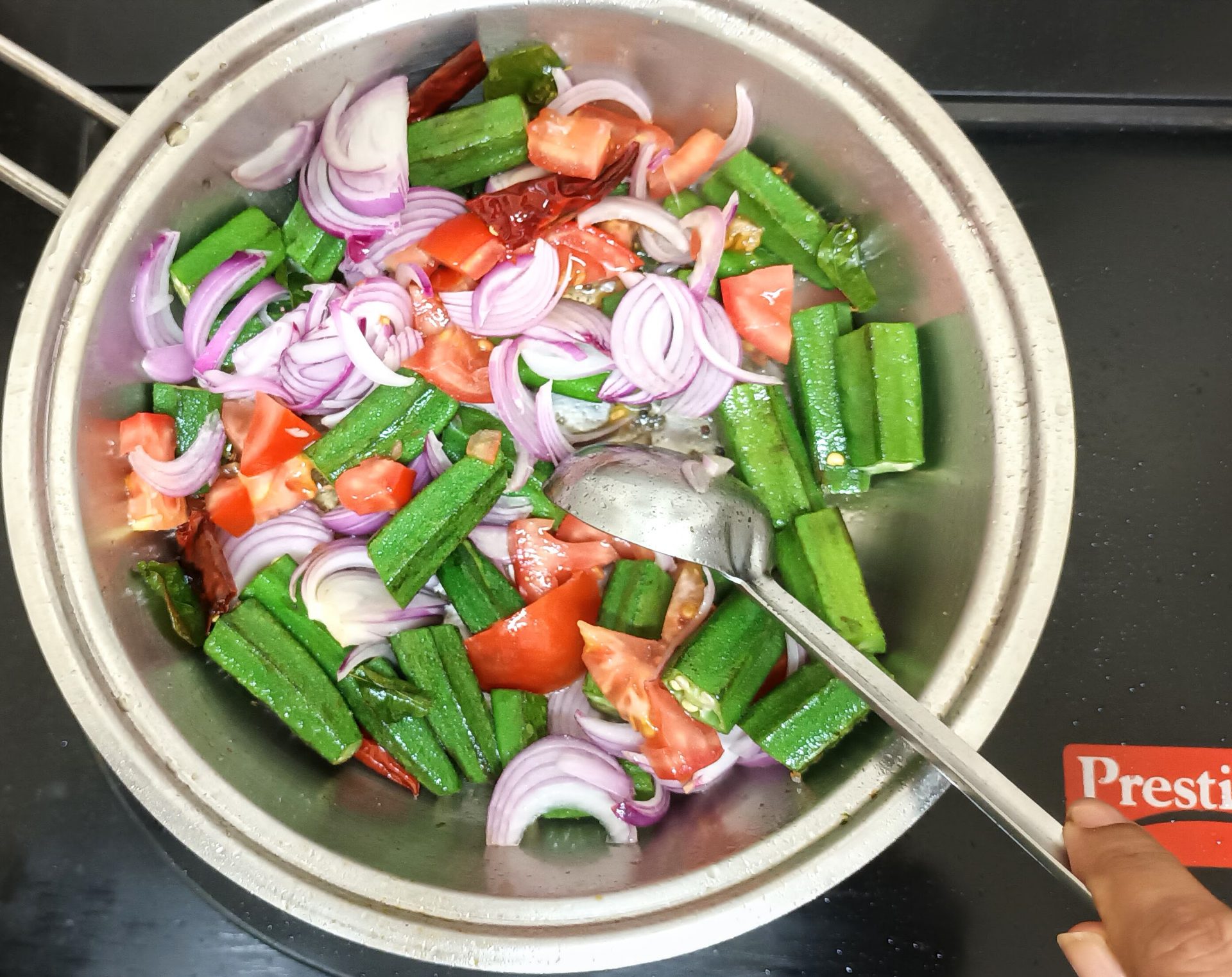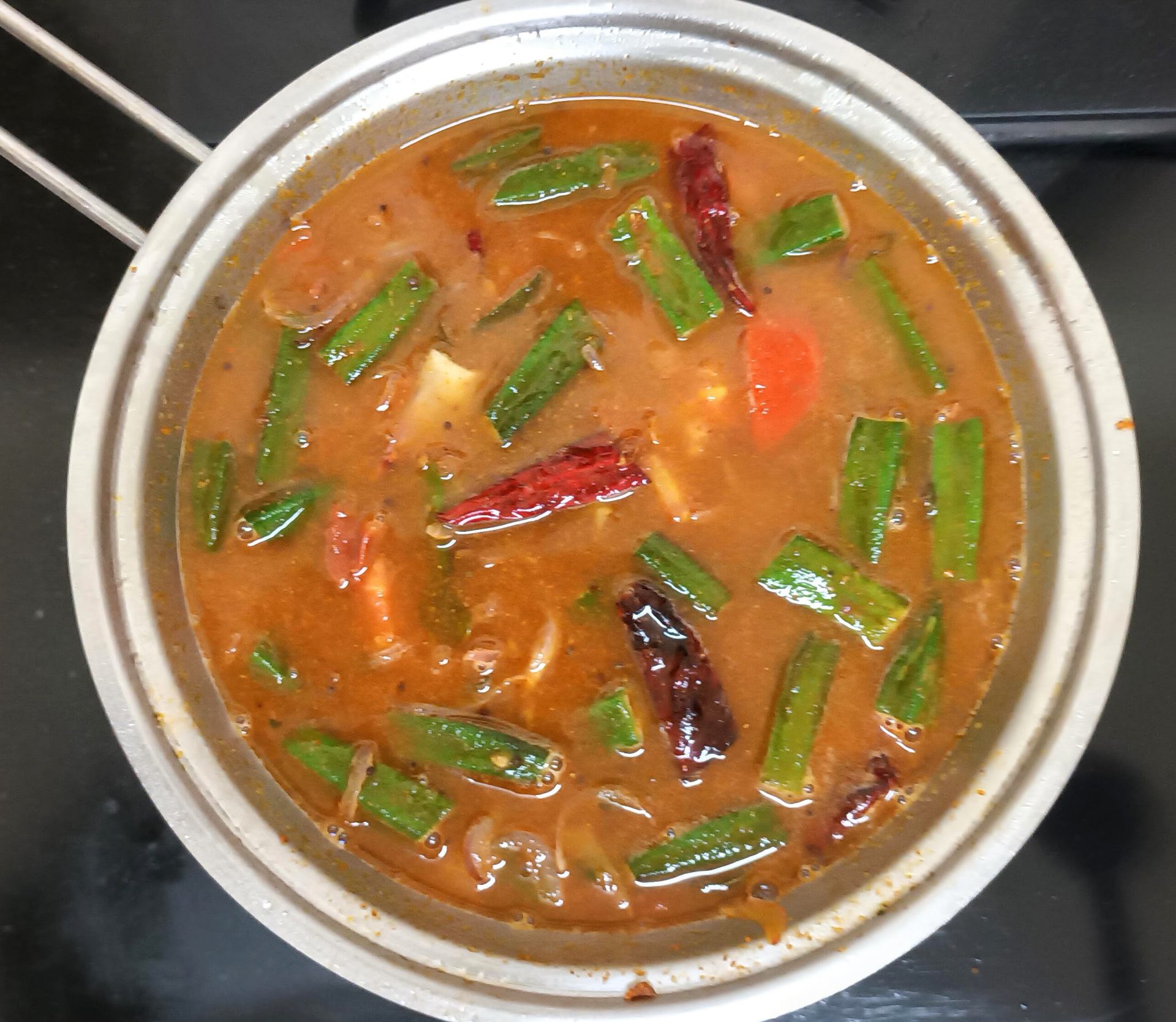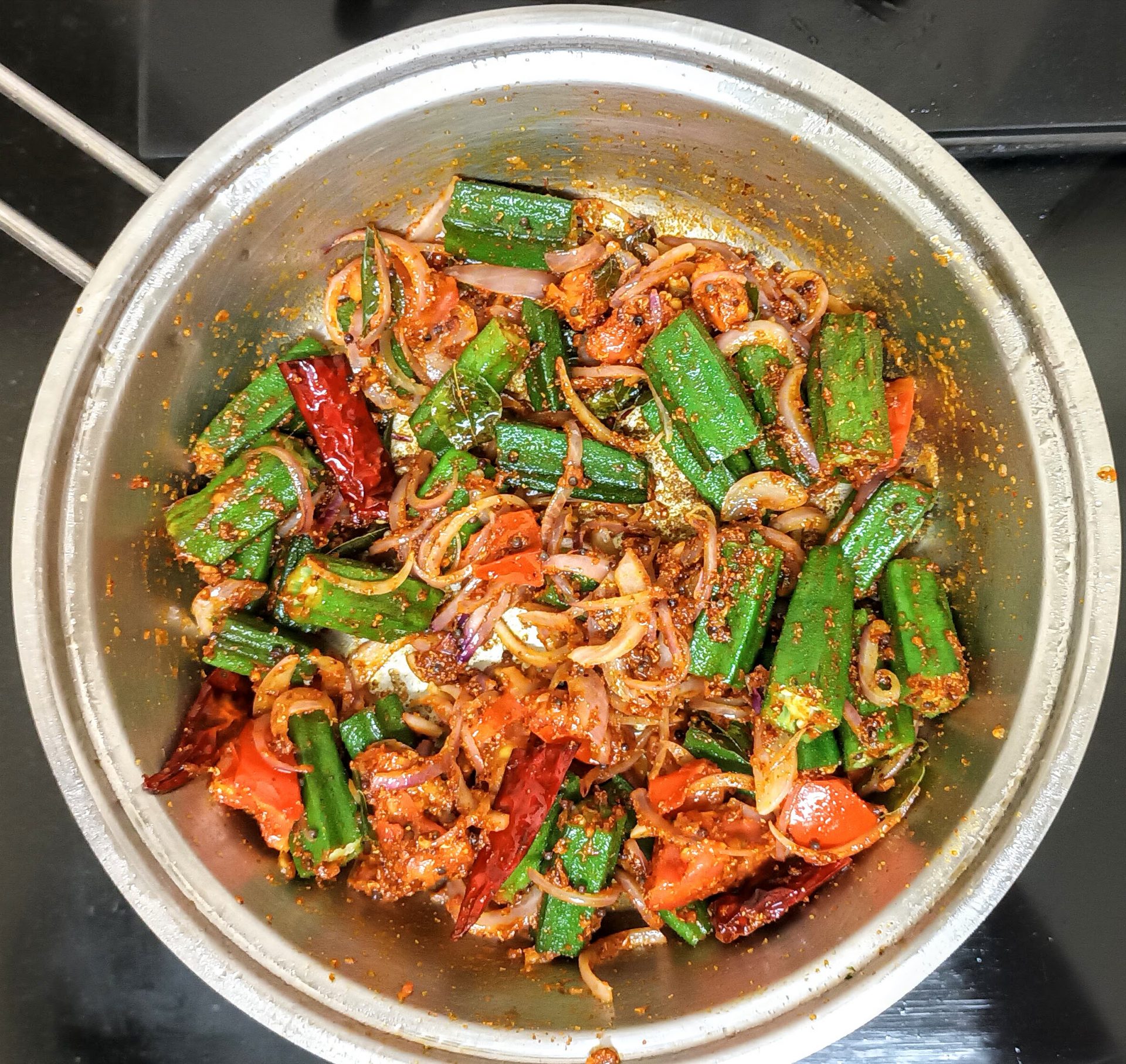 - I have used Okra/Ladysfinger here, other vegetables that can be used are Drumsticks, Shallots, Onions, dehydrated berries like Turkey berry(Sundakai), and even dehydrated vegetables like Cluster beans, Bitter gourd, etc.