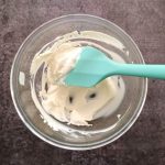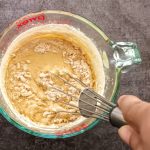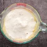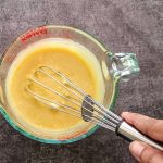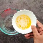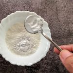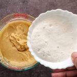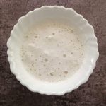 3. Take Milk/Curd in a bowl and add both Baking soda and baking powder to it. Stir and allow to activate. After 5 minutes you’ll have a frothy mixture. Add this to the cake batter, and stir well in one direction(see notes).