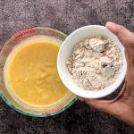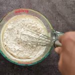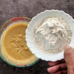 Now mix in the Whole wheat flour, followed by the refined flour to form a lump free batter.