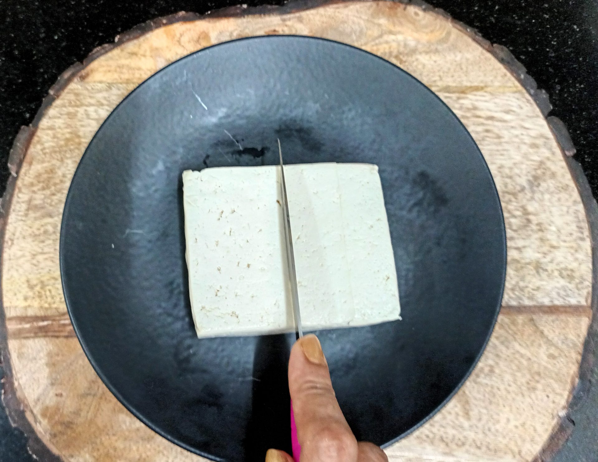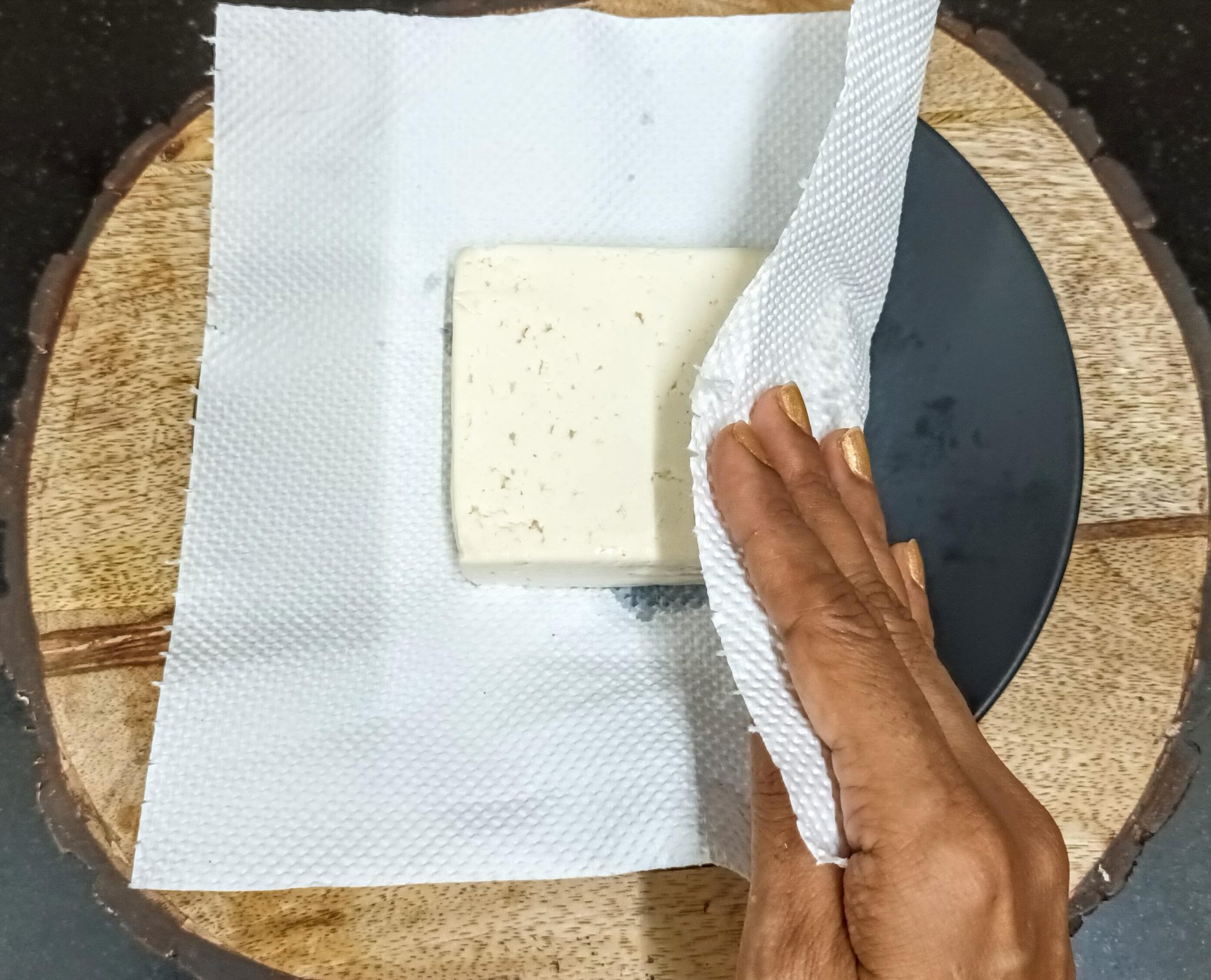 1. Firm Tofu works best for this recipe. Just dab the excess moisture away with pepper towels off the Tofu, and it’s ready to use.