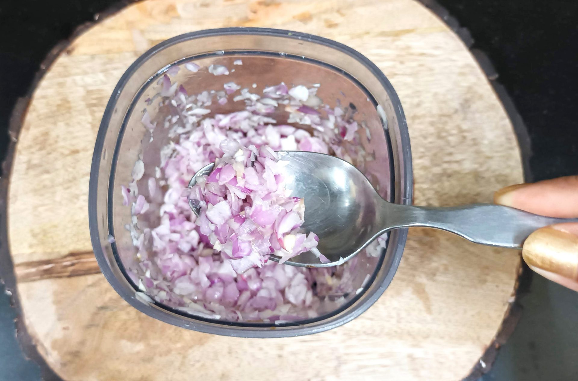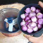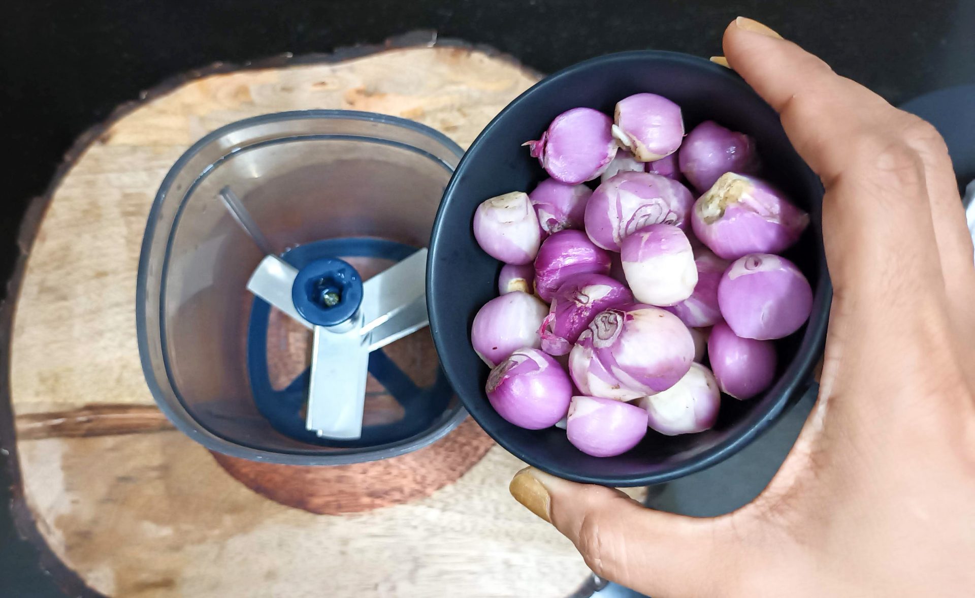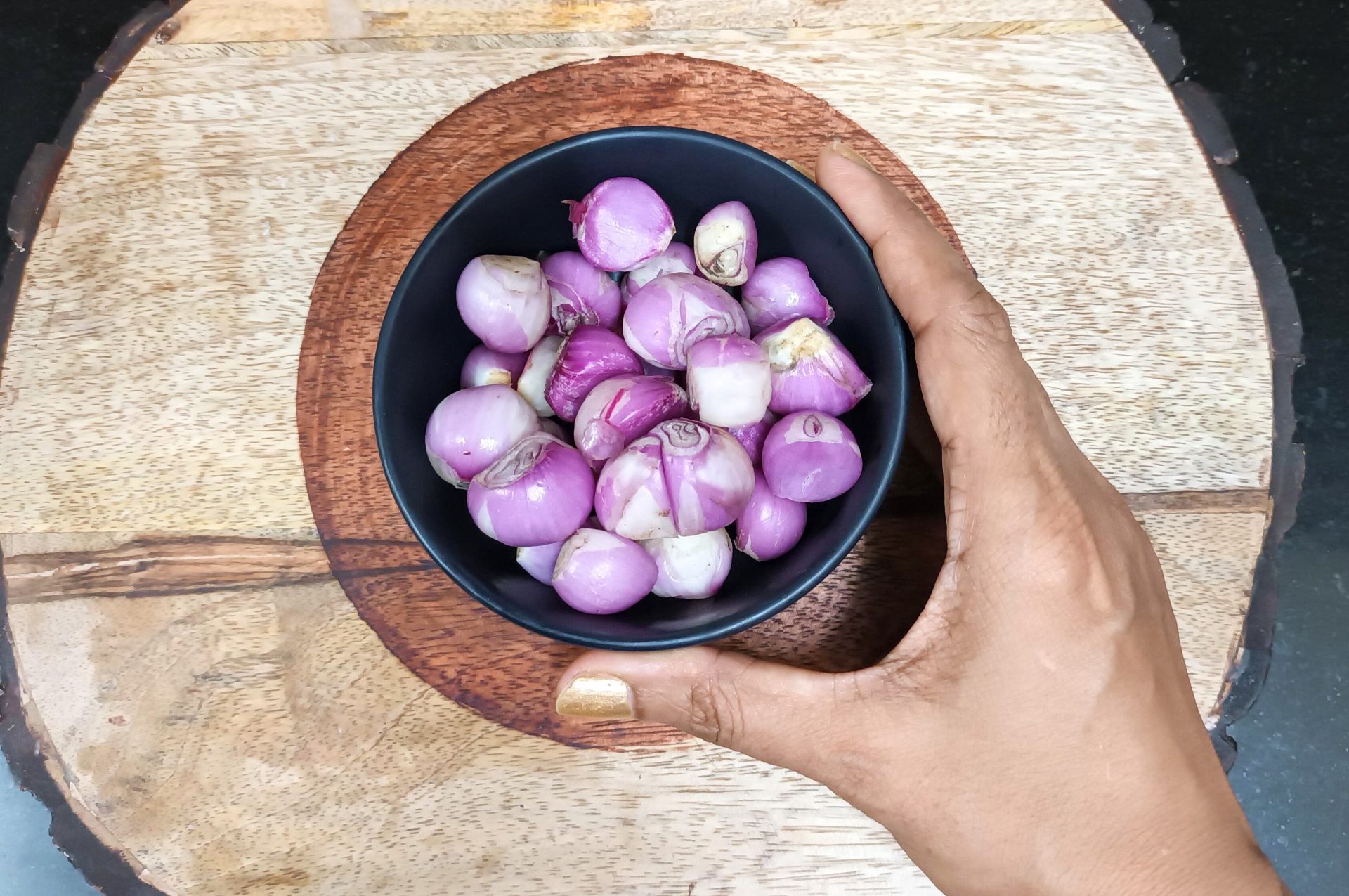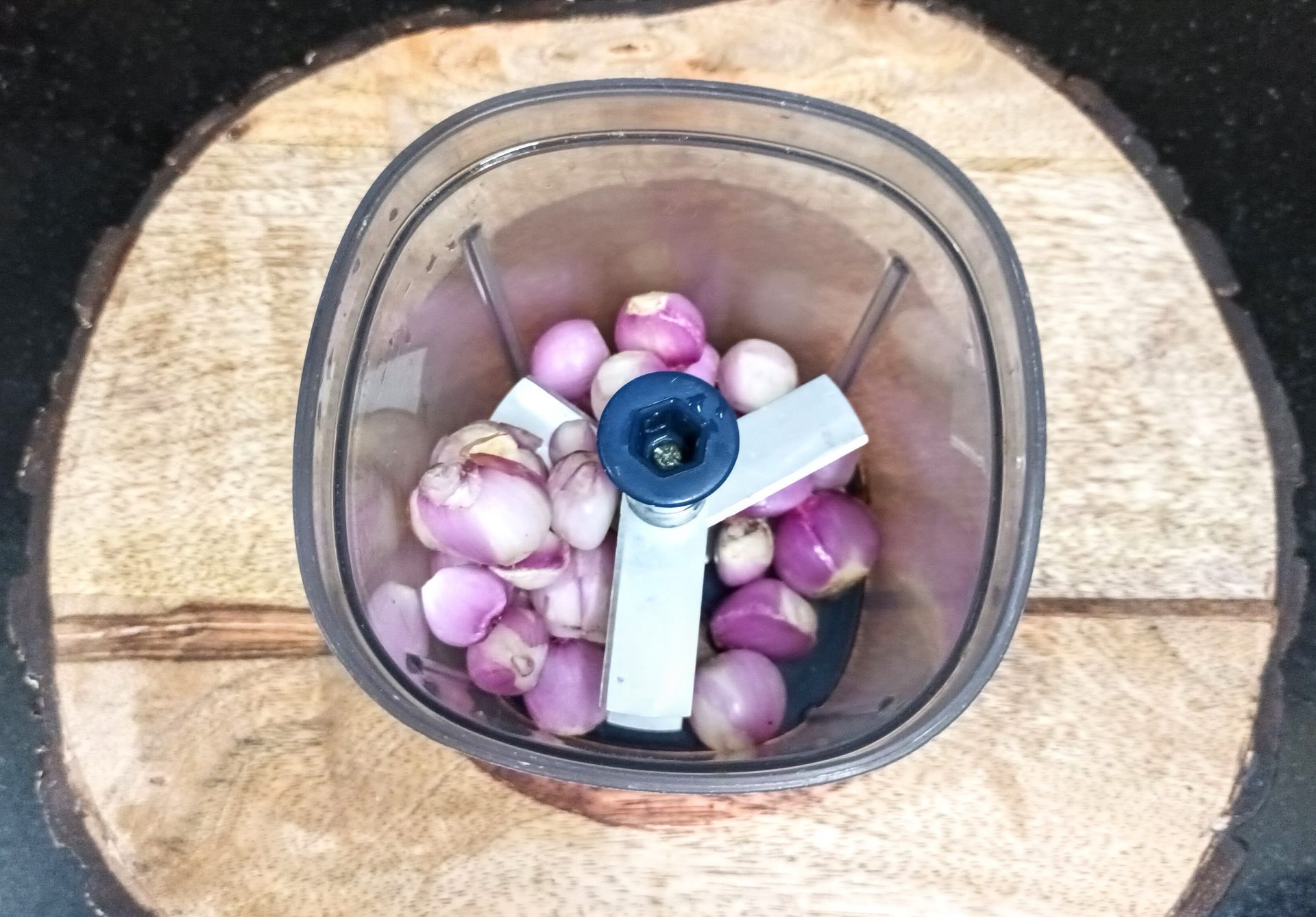 Pearl Onions/ Shallots- they work magic on this dish. I had once used regular Red onions, and there was far too much moisture in the Sambol. Shallots are pungent and have less moisture content. This gives a nice texture to the dish.