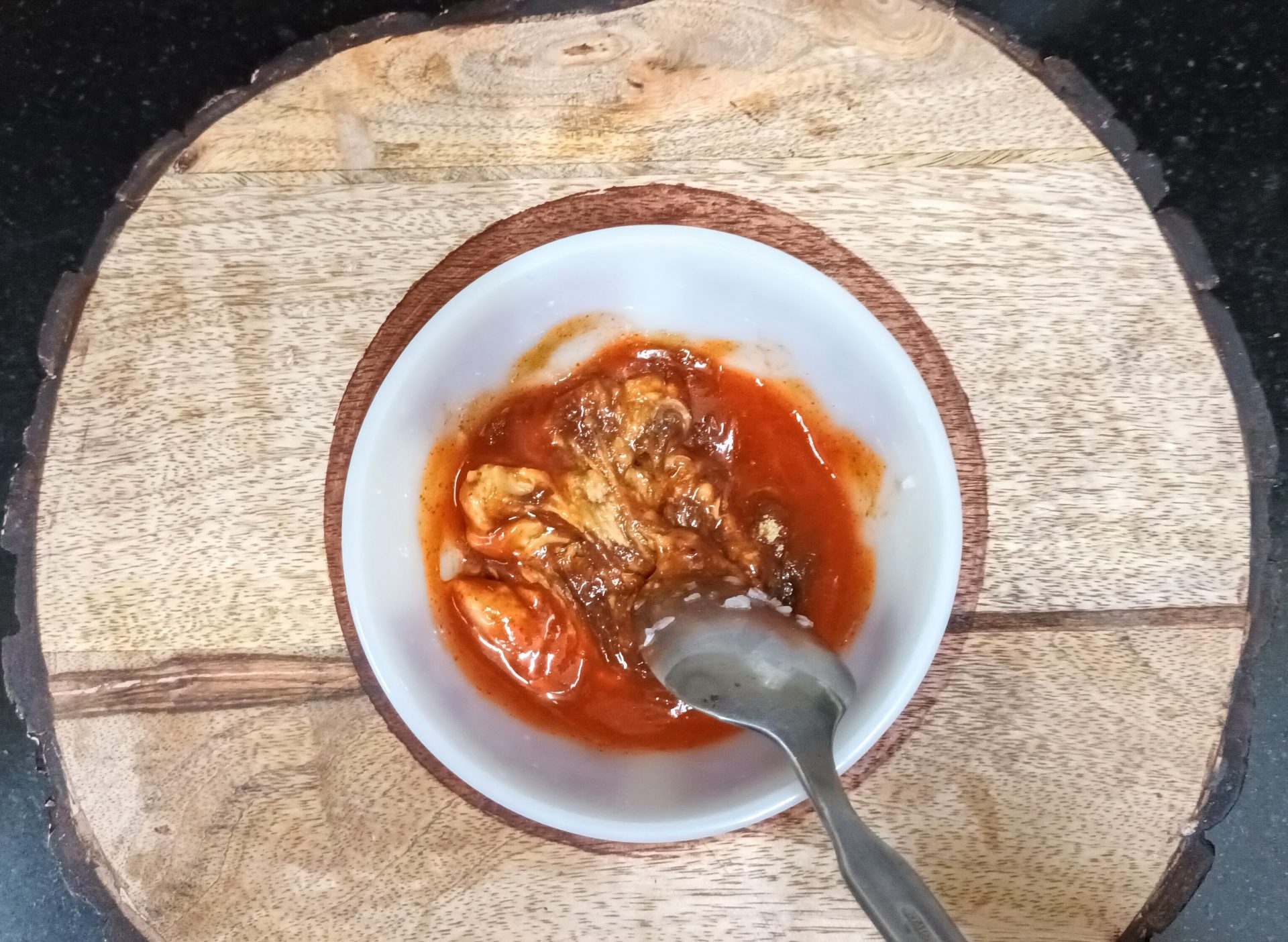 Red Chilli Sauce- for convenience I used store bought Red Chilli sauce. This can be substituted with Red Chilli paste, as per taste.