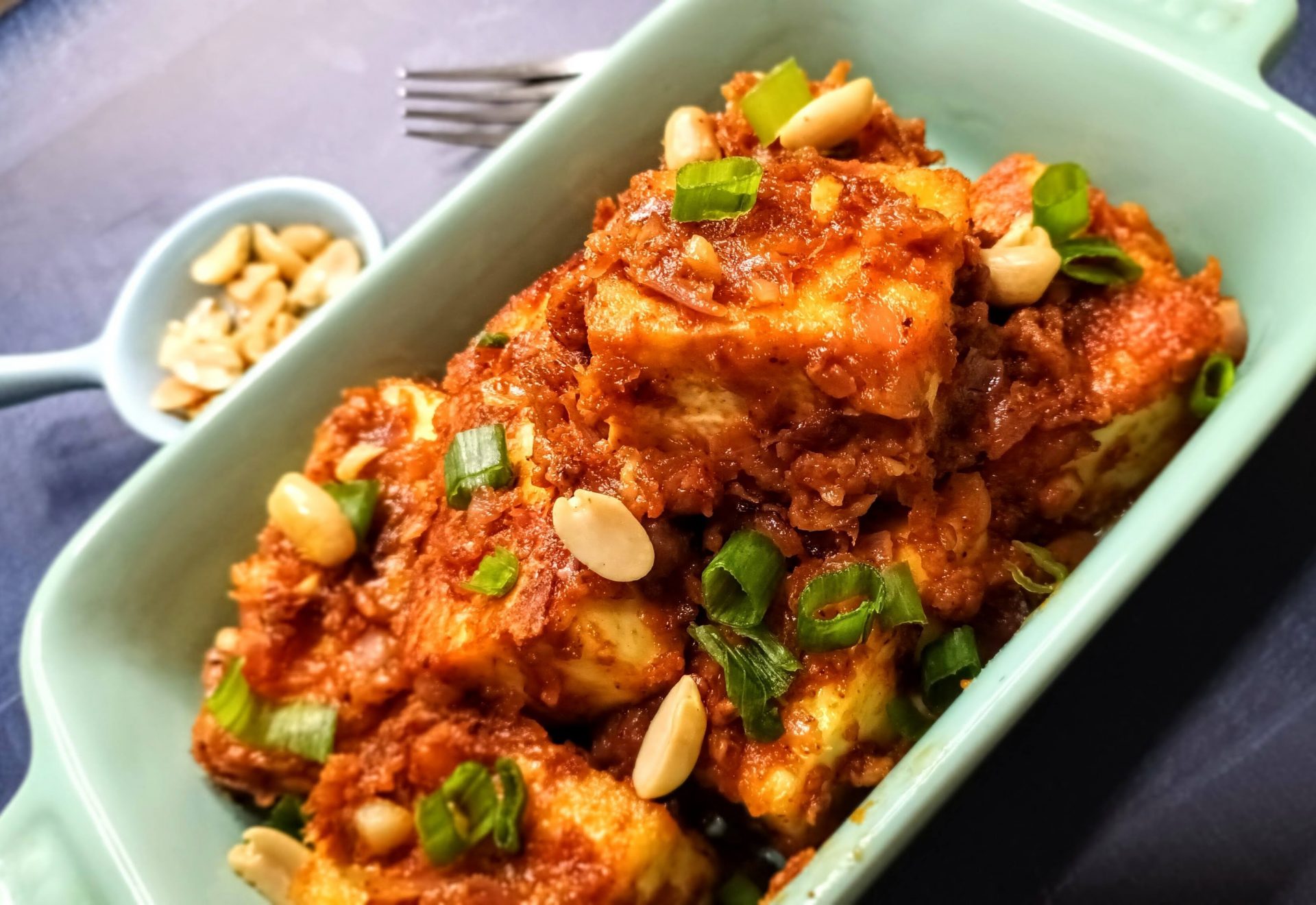 The Tofu Steaks in Peanut Sambol is a great party snack, a Vegan option to serve at get togethers.  Weight watchers will love it. Overall it is a healthy dish, with loads of flavors and textures.