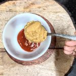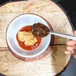 - Next, to a bowl add the red chilli sauce, peanut butter, brown sugar, tamarind paste, and mix every thing well. Set this Sambol paste aside until further use.