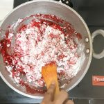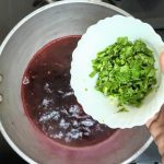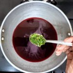 - Take the Beetroot stock in a Kadai or heavy bottomed vessel, add salt, oil, and Green Chilli paste and bring it to a roll boil. Add the chopped Coriander leaves, and lower the flame.