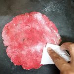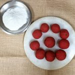 Beetroot Rice Rotis are the softest and are made with steamed rice flour, and Beetroot stock. This is an extension of my Rice Flour Rotis recipe. Usually when we cook Beetroot, we tend to throw away the stock(cooked water), unless using it in a soup. I used the stock, instead of plain water to staem the rice flour. Unlike the Akki Roti these rotis do not have chopped onions and other spices added to them. If made correctly, they also fluff up like a phulka. Since they are made with rice flour these Rotis are gluten free and perfect for people with gluten resistance.