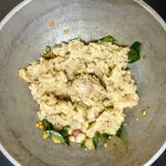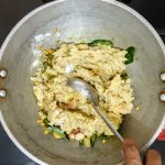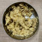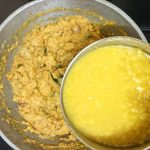 - Pressure cook the tubers (Pidi Karanai), and the Dal separately, until soft. Add a little salt to the tubers and turmeric powder to the Dal before placing in the cooker. Once cooked peel the Pidi Karanai and mash it well. Mash the cooked Dal with the back of a ladle, and set aside.