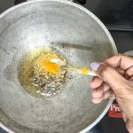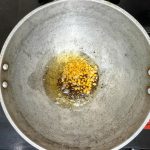 - Next, take oil in a Kadai/Pan and heat. Put all the ingredients mentioned under “to temper”. When the Mustard seeds crackle, add the Shallots, green chillies, ginger and curry leaves, turmeric powder, and fry nicely.