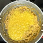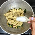 - Now add all ingredients mentioned under “to be ground to a paste” to a blender jar, and grind to a smooth paste with some water. Add this paste to the onion and Pidi Karanai mash.