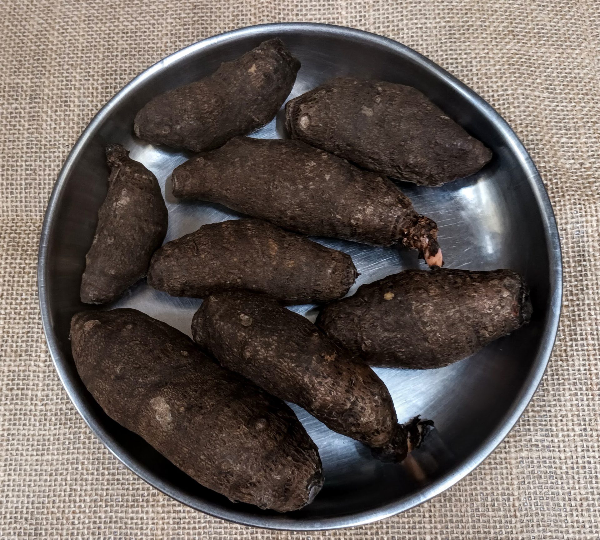 Pidi Karanai is confused with Senai Kizhangu (Yam/ Jimmikand), many times. Though they belong to the same family, they look very different. Yam is bigger and also called Elephants foot due to its shape, whereas Pidi karanai are only fist sized. Some people also confuse Pidi Karanai with Sepankizhangu/ Arbi, because they look identical. You can tell them apart from their colour. Pidi Karanai is a darker brown as compared to Arbi/Taro root/ Sepan Kizhangu.