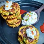 - Broccoli And Zucchini Fritters- The combination of Zucchini and Broccoli is a match made in heaven. These two have been used in many dishes from Pastas, Pizzas, Salads and fritters. The current recipe is of fritters, which are very melt in the mouth and bursting with flavours. Usually fritters have egg added to the batter, but these are eggless fritters. They need not be deep fried at all, but just grilled on the Tava, which makes them healthy too. I had some leftover rice and added it to the batter to make them chunky and give a slightly crisp exterior, whereas the insides are soft. I have used onion in the hung curd dip, which can be avoided while making as a Satvik meal. Click here for recipe.
