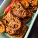 - Roasted Eggplant(brinjals) 2 ways- This roasted Eggplant subji is the simplest to make as I roast/bake it in the oven. The actual recipe involves deep-frying this in oil, but these days most of us want food that is light on the oil. Moreover, I feel when deep-fried these Brinjals/Eggplants take in a lot of oil. So the best way to cook them is over a pan or in the oven. Once them I add tempering and its done. For the recipe click here.