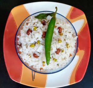 - Coconut Rice – This recipe of Coconut Rice is flavoured with freshly grated coconut and tempered with whole spices in coconut oil. The spices used here are very minimal. It makes for a good lunch box recipe. Check here for recipe.