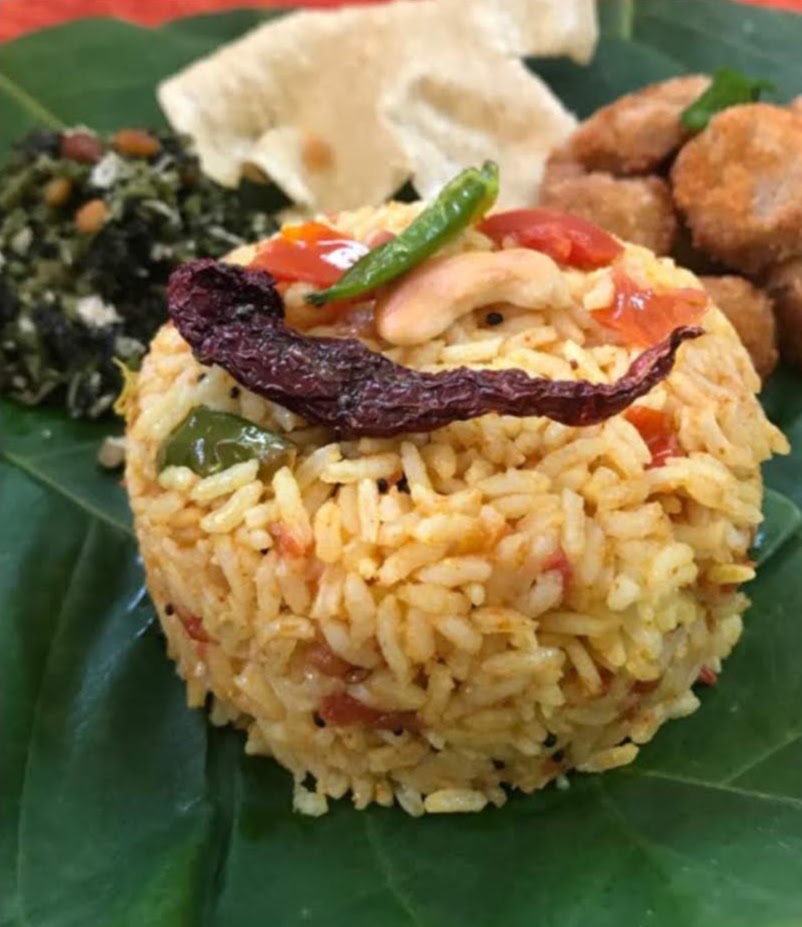 - Tomato Rice – Tomato Rice is a very simple recipe and I love making it just for this reason. It is a quick fix in many ways. Whether I have to head out in a hurry or have to fix a lunchbox in a short time, this dish is always my option. This dish also necessarily does not need a side dish to go with it. Any stir fry will do, or just by itself, it is great too. This dish has all the goodness of tomatoes, so it is rich in vitamin C, in lycopene that is good for the skin, a decent amount of fibre. Find the recipe here.