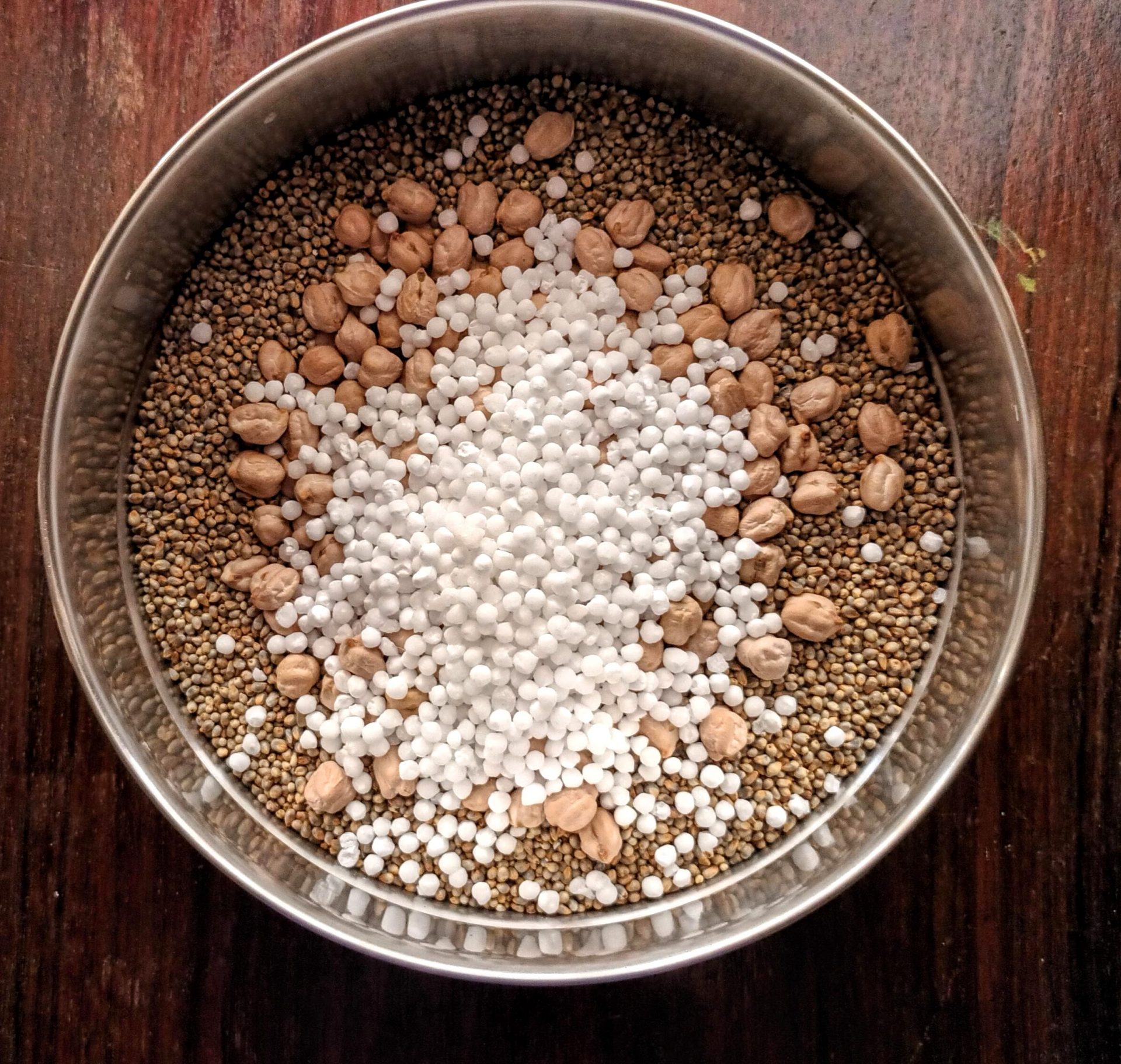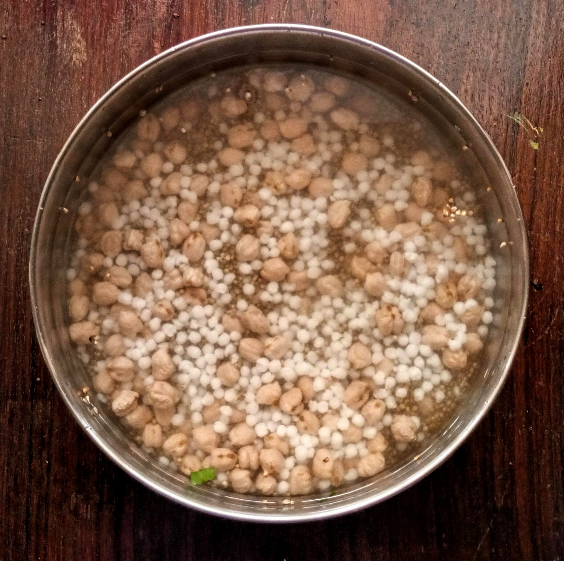 - Wash the Bajra/Pearl Millet and Chickpeas . Put them in a big bowl, add the Sabudana and soak them all together for 6-7 hours.