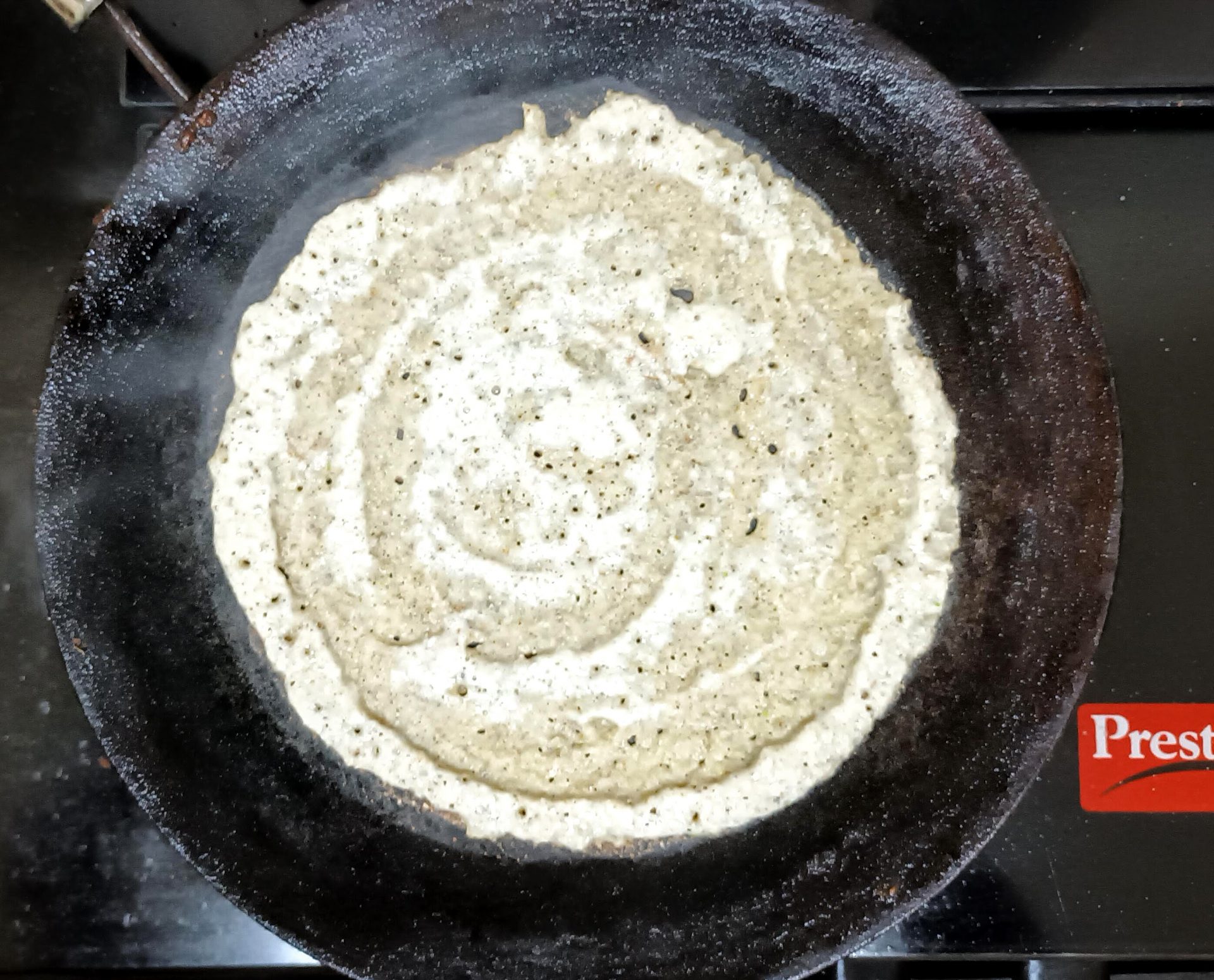 - To make Dosa, heat a Pan, grease with oil and spread a ladle or two of the batter. Drizzle oil and cook on both sides until crisp. Serve with your favourite chutney.
