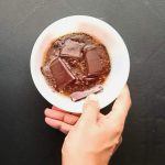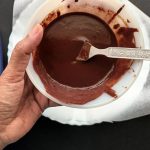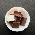 - To make the Chocolate coating, take the eating chocolate bar in a bowl (Please note that we used unsweetened chocolate bar preciously, and now are using eating chocolate which is sweet). Add the butter, and put them in the microwave for 30 seconds. Remove and stir briskly to form a glossy mixture.