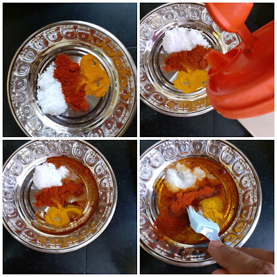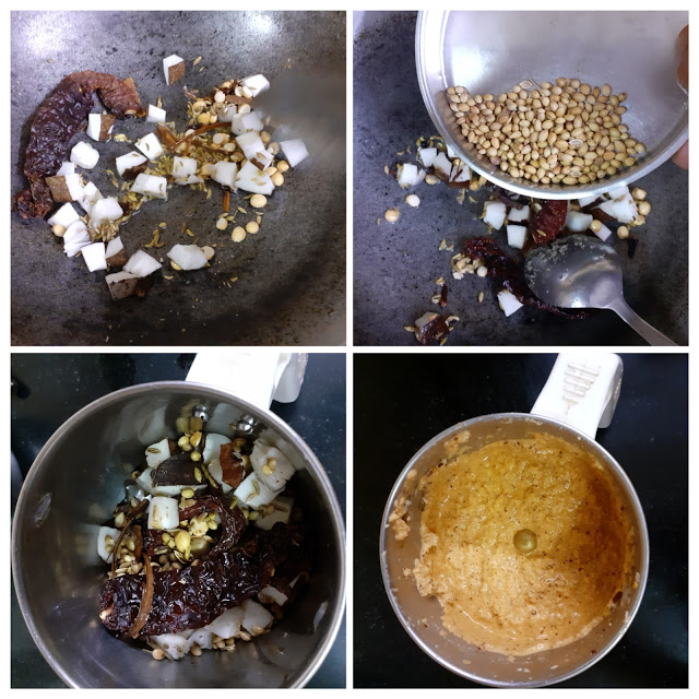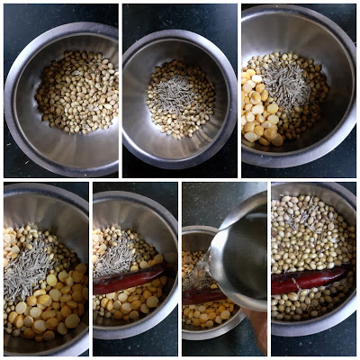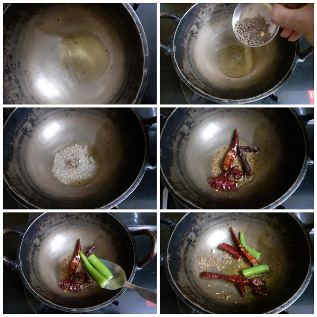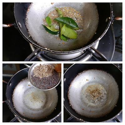 The below Thaali took me under 60 mins to create. All the recipes mentioned here are also available separately. But here I am giving the whole process of how I went about creating it, and also giving the recipes side by side.