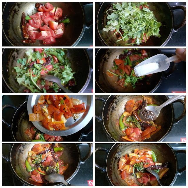 2. To make this dal in a pan instead of cooker. To pre cooked dal add all the above tempering ingredients and saute tomatoes in the tempering, and pour it into the dal.