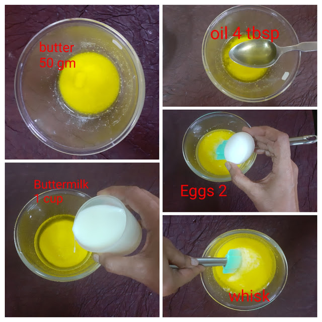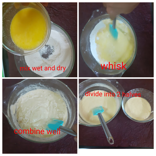 4. Take all wet ingredients in another bowl and combine well. Now mix the wet ingredients to the dry ingredients and combine well.